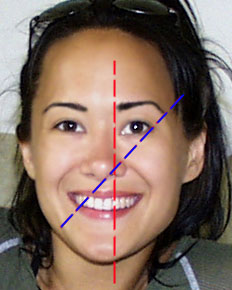To figure out where the brow should end, hold the pencil from the bottom of your nose, to the outer corner of your eye (see blue line above)